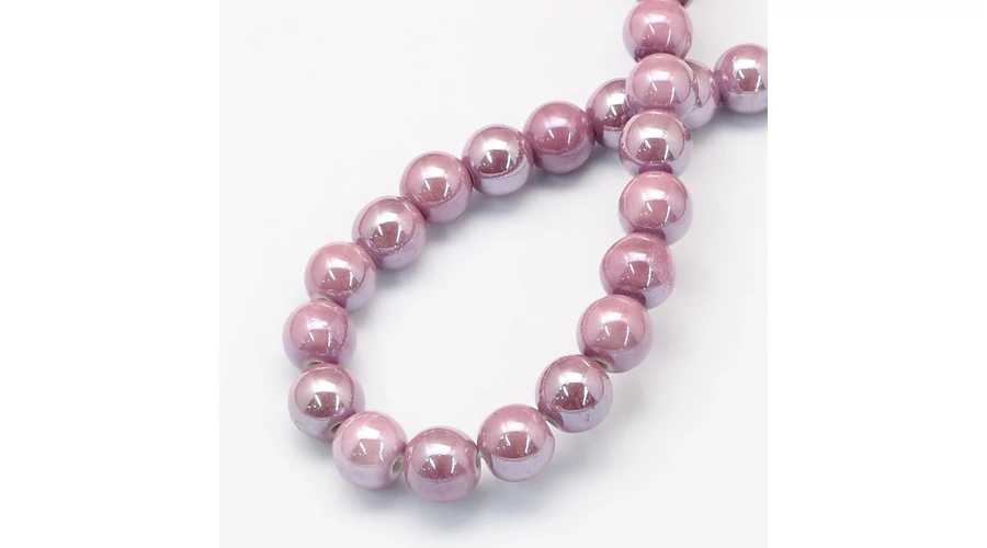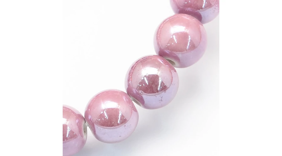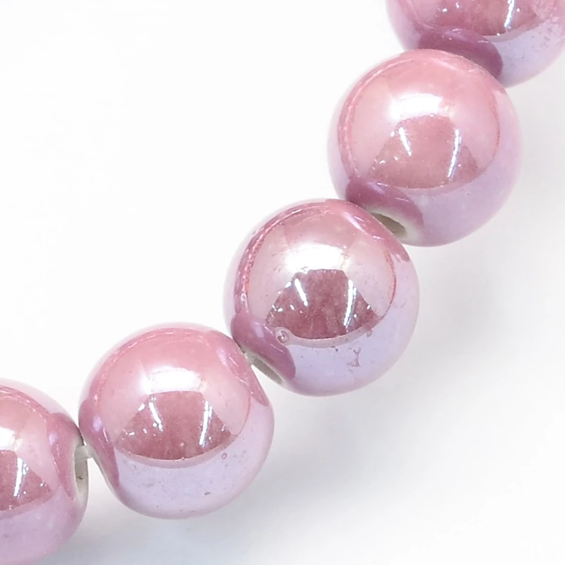 Handmade Flower Printed Porcelain Ceramic Beads Strands, Round, Pearl Pink, 10mm