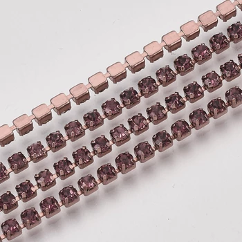 Lánc - strasszos - 2,1mm - halvány ametiszt színben