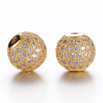 Cirkón kővel díszített - 10mm - gömb alakú köztes gyöngy, arany színű foglalatban