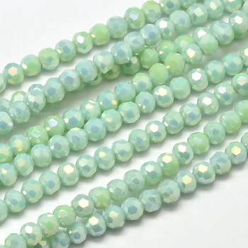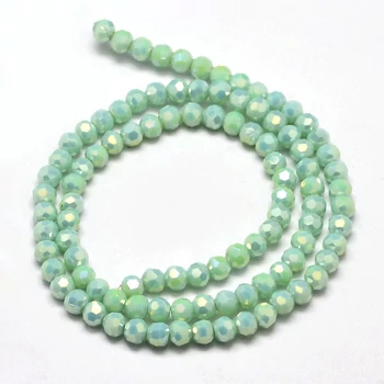 Üveggyöngy - 4mm - telt halvány zöld AB színben - csiszolt gömb formájú