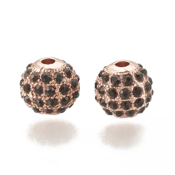 Köztes gyöngy - 8mm - Ötvözött gyöngy - strasszos - kerek - Fekete - rózsaarany