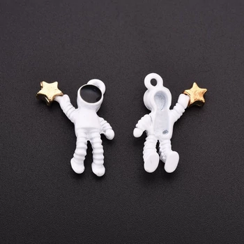Medál - 21x16,5mm - fehér űrhajós - aranycsillaggal