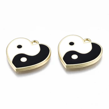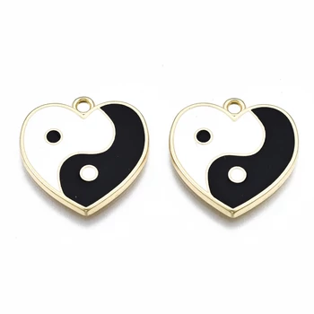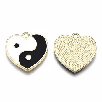 Medál - Yin és Yang medál szív formában – 18,5x18,5mm - fekete és fehér - halvány arany - ólom és Kadmiummentes!