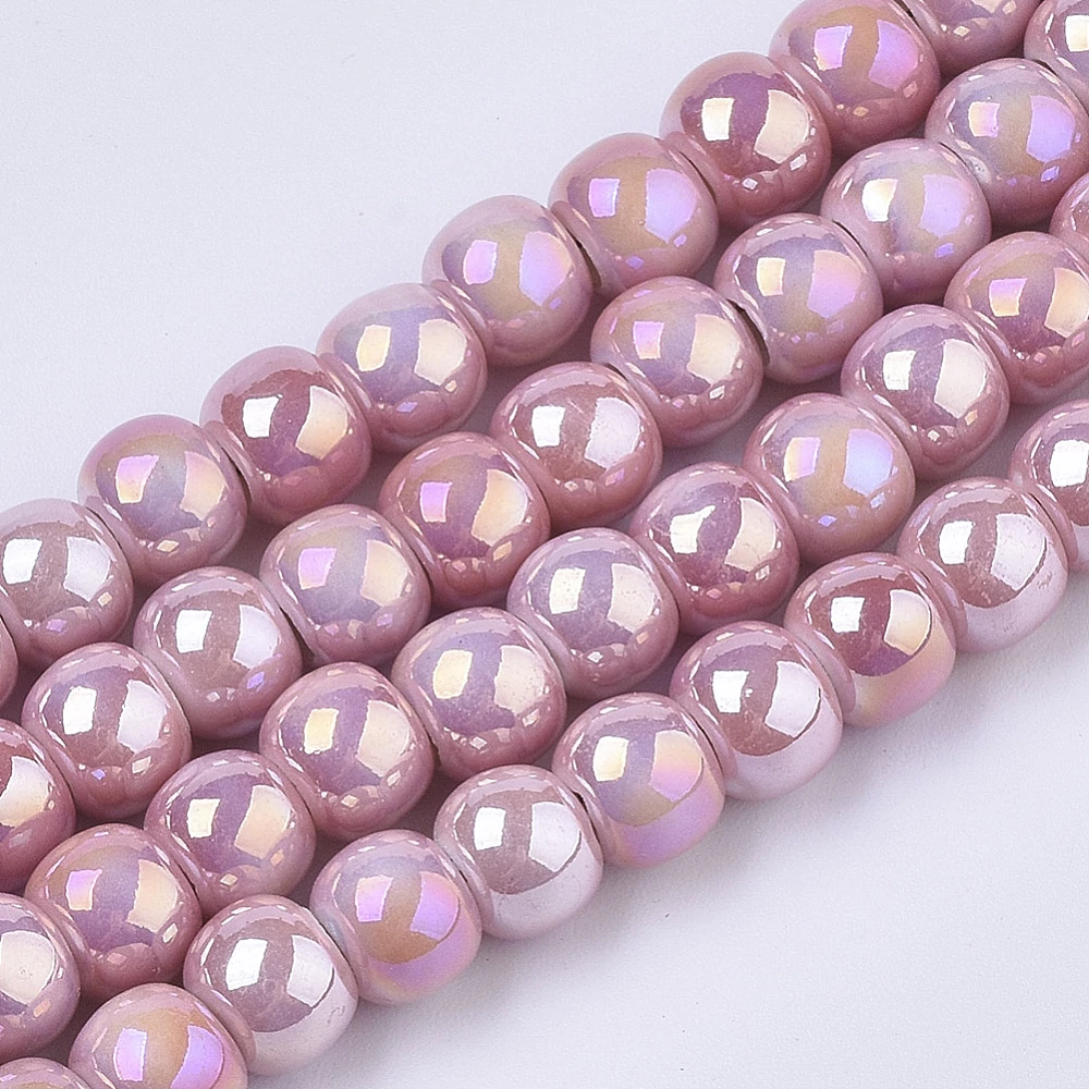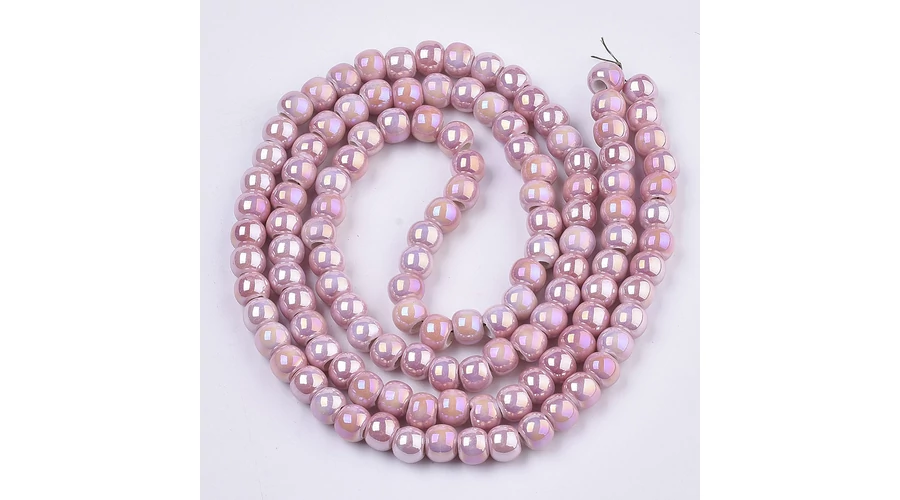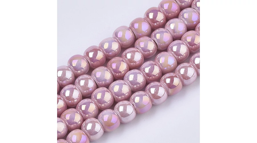 Ez a kézzel készített porcelángyöngy igazi különlegesség – minden darab egyedi, a fényes mázas felület és az irizáló (AB) galvanizált bevonat káprázatos csillogást ad. Az antik rózsaszín árnyalat romantikus, vintage hangulatot sugároz, amely minden ékszeredet kifinomulttá és nőiessé teszi.